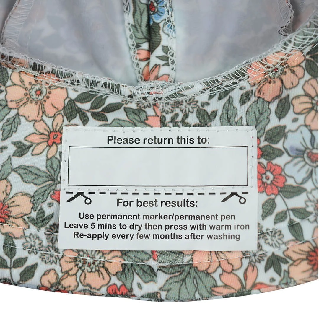 Not your usual girlishly-pink flower, this beautiful so-now colour combo of peach, blue and olive greens is a firm favourite and predicted best-seller! Pairs perfectly with our Peach or Slate Rash Vests. Available in Legionnaire, Ponytail Bucket and Wet Bag.