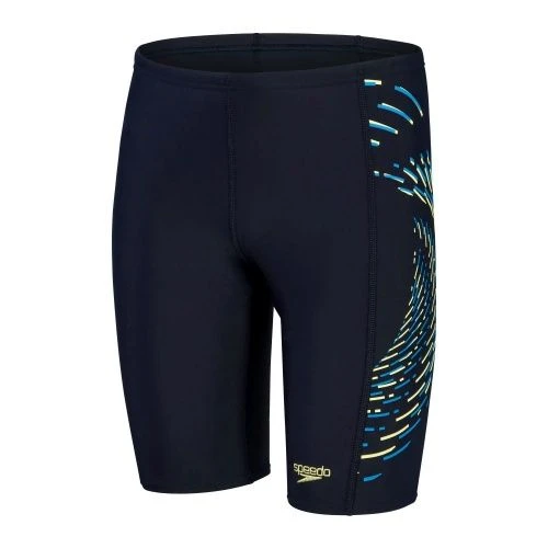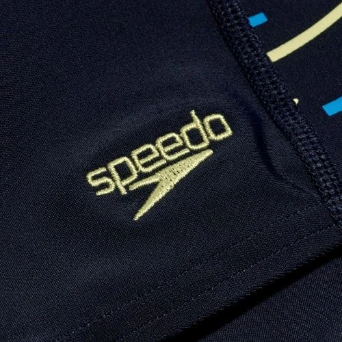 Speedo Essentials – everything your child needs for a great swim. Featuring a blue and green ‘cresting wave’ plastisol graphic, this sleek-looking navy Jammer is stylish and understated. Ideal for training, lessons and fun in the pool, it’s lined at the front for comfort and modesty and includes an internal drawcord to allow young swimmers to adjust the fit. Providing higher chlorine resistance than standard swimwear fabrics, the jammer offers excellent shape retention and fits like new for longer with CREORA® HighClo™. If you’re looking for great eco-credentials, it’s got those, too: our exclusive Eco EnduraFlex fabric is made from 100% recycled pre-consumer waste, such as fabric waste from factories.