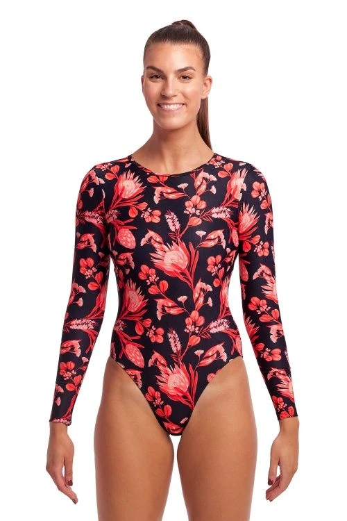 My back zip fastening with a fabric cord attached helps you zip in and out of me with ease. My compressive powermesh lining around your body offers extra support and creates a strong silhouette. I’ve got a high leg height. I’m made with all the care and love that makes me proud to be Funkita. Made from our exclusive C-Infinity fabric, a 100% Italian polyester that is a colourful breakthrough in chlorine resistant fabric technology! The superior choice for swimmers, C-Infinity has exceptional strength and can retain its durability far beyond other elastane swimwear. Ideal for frequent pool use for recreational and performance-based swimming.