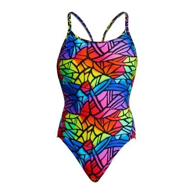 With fabric panels across the back I’ll make you feel secure and supported across the bust and shoulders.My double bind straps over the shoulders provide added comfort and support while swimming.I’ll provide you with a nice, modest rear coverage to keep your peaches snug while swimming along.I’ve got additional front lining and superior construction to be your perfect training companion for years to come. I’m made with all the care and love in production that makes me proud to be Funkita.Made from our exclusive C-Infinity fabric, a 100% Italian polyester that is a colourful breakthrough in chlorine resistant fabric technology! The superior choice for swimmers, C-Infinity has exceptional strength and can retain its durability far beyond other elastane swimwear fabrics.Ideal for frequent pool use for recreational and performance-based swimming.