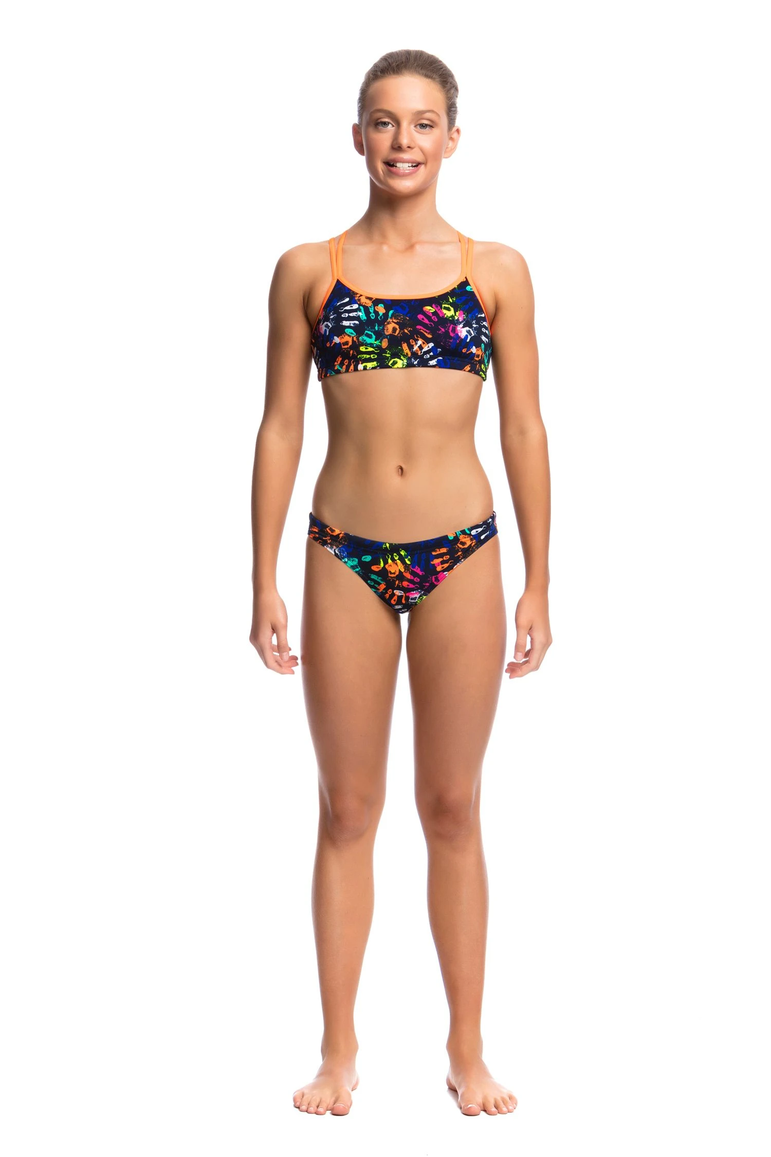 A double strap crossover back that provides added comfort and support for hours in the pool. Pairs back with the new skinny brief which provides firm rear coverage with drawcord.
