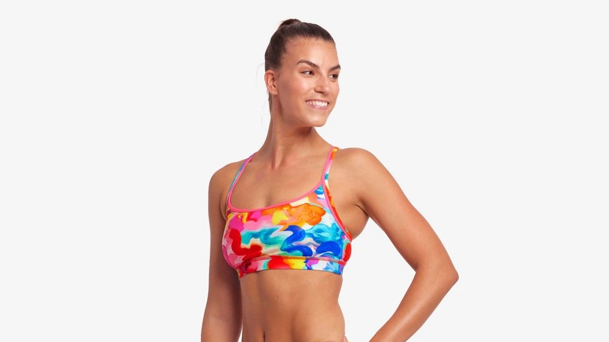 With a firm fitting racer back, double bind shoulder straps plus a wide under bust elastic, I promise to keep you secure and comfortable throughout your swim. I’m perfect for regular swimming and wearing under a wetsuit if you’re open water swimming. I’m sold as a separate. I’m made with all the care and love in production that makes me proud to be Funkita. Made from our exclusive C-Infinity fabric, a 100% Italian polyester that is a colourful breakthrough in chlorine resistant fabric technology! The superior choice for swimmers, C-Infinity has exceptional strength and can retain its durability far beyond other elastane swimwear fabrics. Ideal for frequent pool use for recreational and performance-based swimming.
