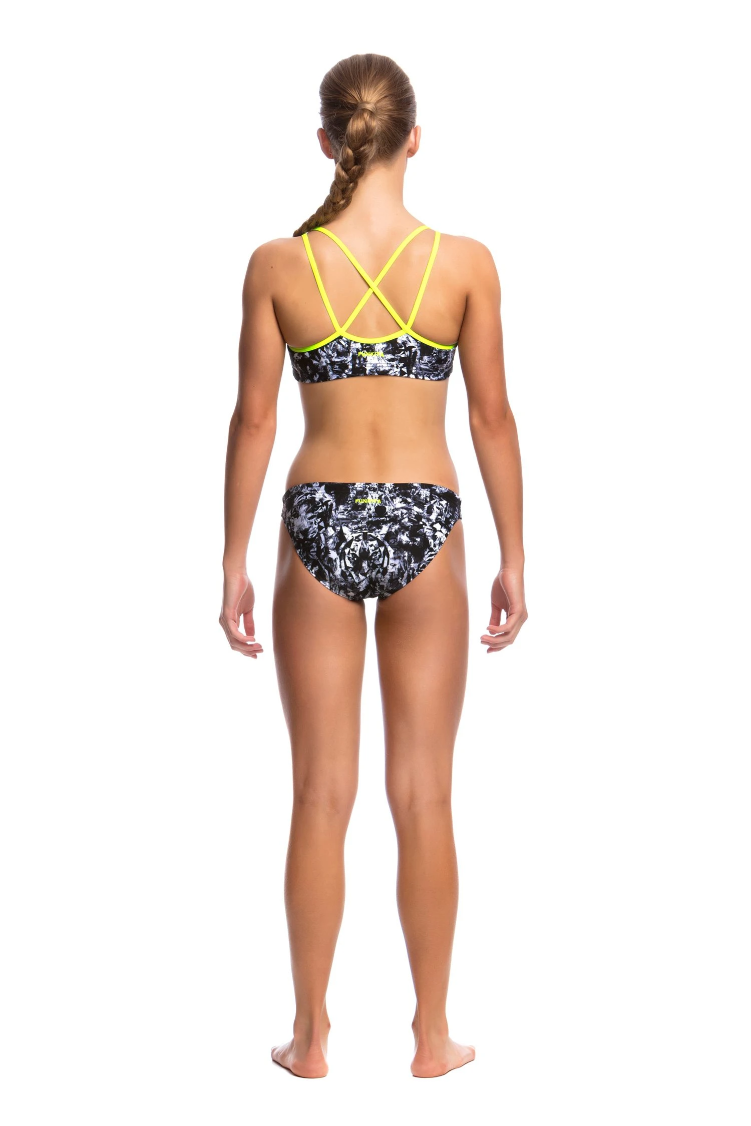 A double strap crossover back that provides added comfort and support for hours in the pool. Pairs back with the new skinny brief which provides firm rear coverage with drawcord.