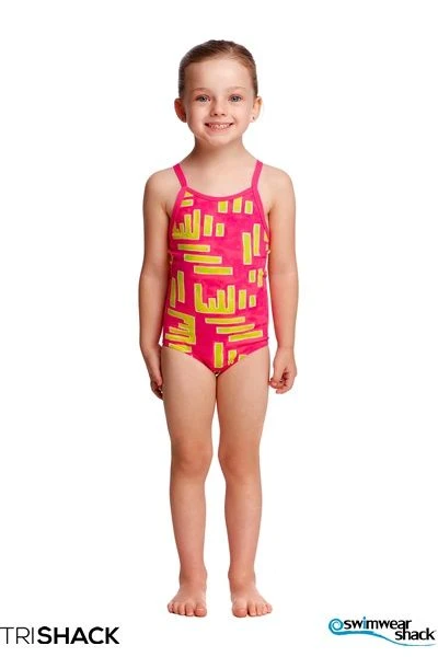 With full back coverage and a racer strap finish, this simple style is easy to put on and take off. Features a low leg, single strap bind with Funkita embroidered logo and full front lining. Available in sizes 1 – 7.