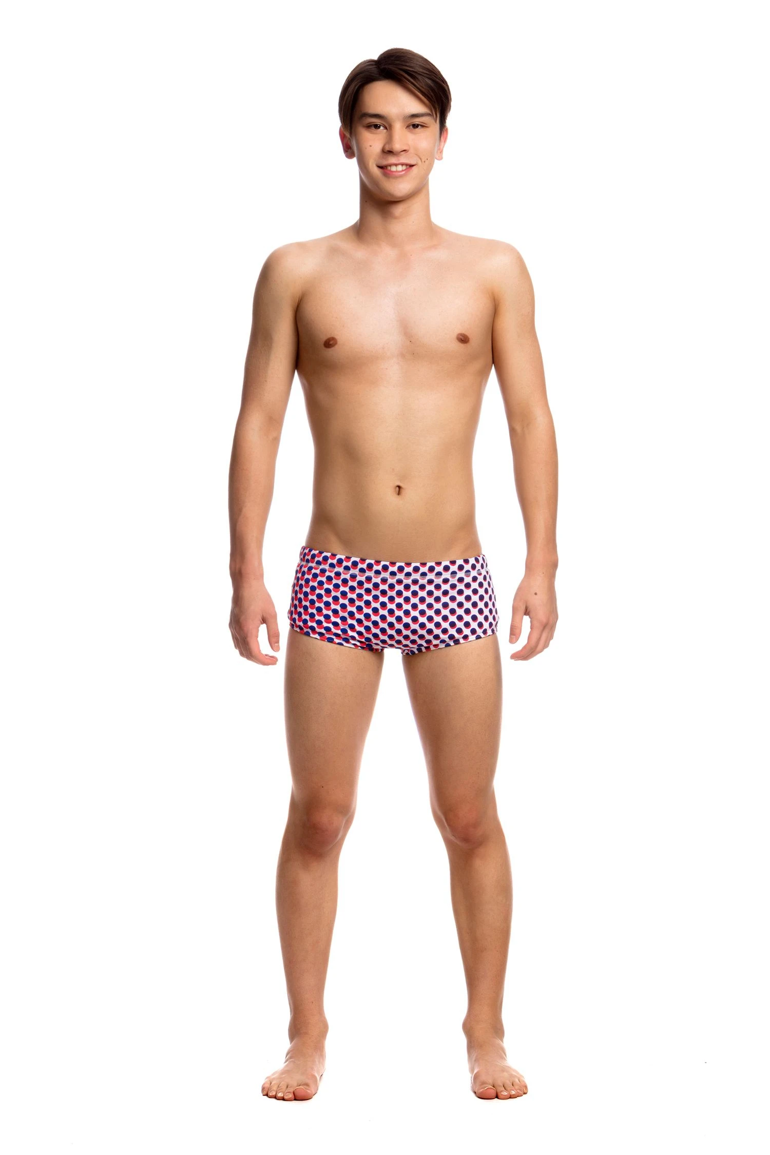 13cm wide side trunk (14cm for larger sizes). Front lining and drawcord with Funky Trunks logo come standard. Wide elastic at waist offers exceptional comfort all round. Available in sizes 8 – 14.