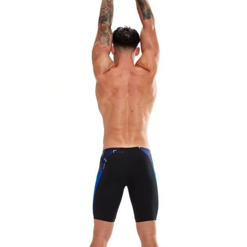 Tech-inspired aesthetics. Cut a streamlined silhouette in training wearing this Spliced Jammer, designed with a bold blue and white panel print inspired by the geometric lines of Sydney’s iconic Bondi Icebergs pool. A power mesh rubberised liner provides enhanced comfort and support during training, while the drawstring waist allows an adjustable fit. Designed to be durable and better for the environment, the jammer features our new ECO Endurance+ MAX fabric, which is 100% chlorine resistant, quick-drying and made from 100% recycled post-consumer waste.