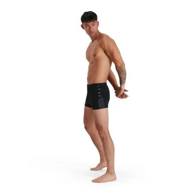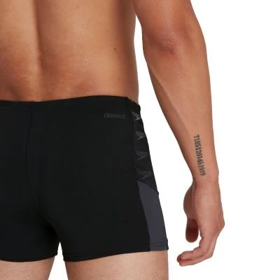 Upgrade your swim with iconic Speedo branding. Feel inspired in the pool wearing this sleek black Aquashort, featuring a vertical repeat pattern of our iconic Speedo Boom. A drawstring waist ensures a great fit during your swim, while our quick-drying, 100% chlorine-resistant Endurance+ fabric is ideal for everyday fitness training.