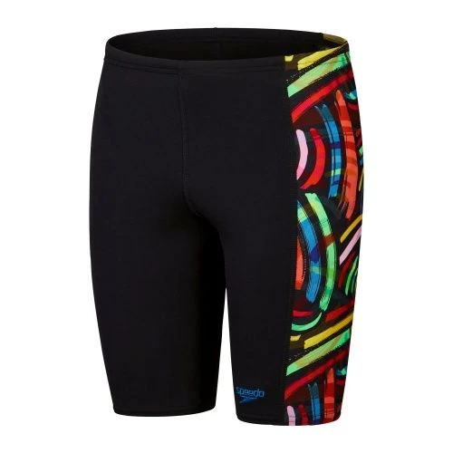 Splash, dive and train in this sleek black Jammer, featuring eye-catching side panels of our brightly coloured ‘brushstrokes’ print. Lined at the front for comfort and modesty, this junior jammer includes an internal drawcord to allow young swimmers to adjust the fit. Designed to be durable and better for the environment, it’s made from our new ECO Endurance+ fabric, which is 100% chlorine resistant, quick-drying and developed using 50% recycled materials.