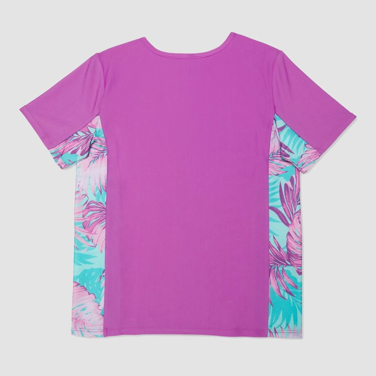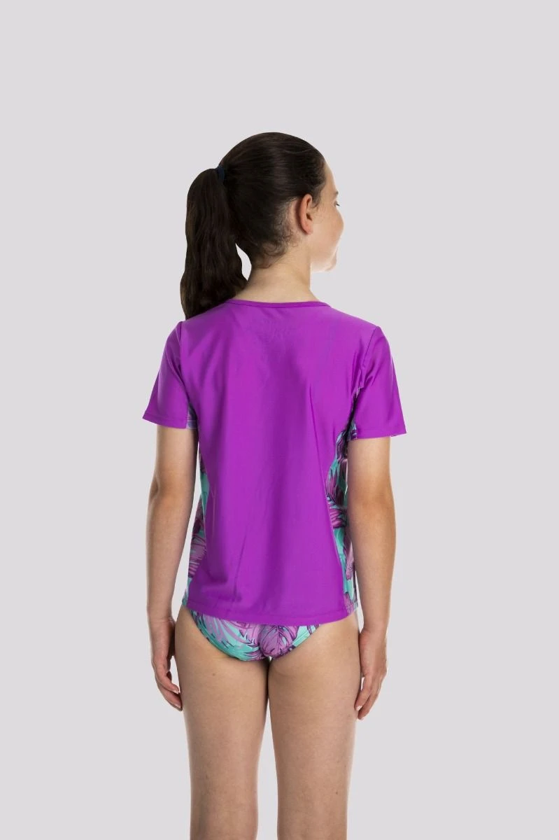 Worry-free aquatic adventures await when she wears this rashguard. This fitted top features printed short sleeves and side panels. UPF rated, so she can splash all day.