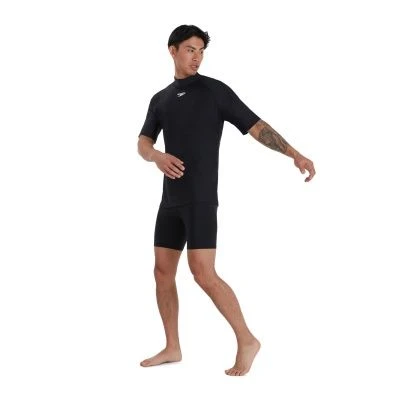 Stylish sun protection swimwear. Come rain or shine, this relaxed-fit Short Sleeve Swim Tee from our Essentials range has you covered and can be worn outdoors or in the pool. Offering fabric sun protection of UPF40+ and a comfy, relaxed fit, it’s ideal for active beach days spent in and out of the water. Our ECOEndurance 10 fabric offers superb colour performance, so you can enjoy the black colour for longer. Offering higher chlorine resistance than standard swimwear fabrics, the swim tee fits like new for longer with CREORA® HighClo™ and is made from 100% recycled materials so is better for the environment too.