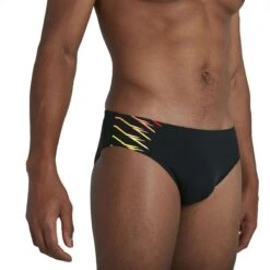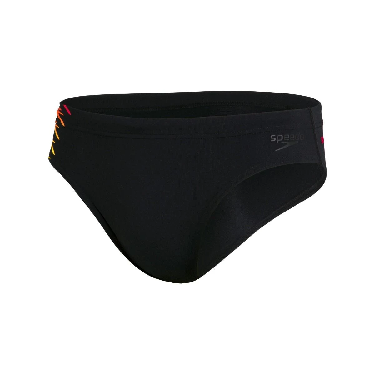 A modern take on the classic Speedo style, this sporty black 7cm brief features a stylish graduated panel print and contrasting logo. Ideal for everyday swim fitness, it includes a drawstring waist for a comfy, secure fit. 100% chlorine resistant thanks to Speedo’s super-durable Endurance+ fabric, it’s perfect for regular pool sessions.