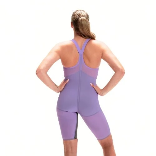 Feel unstoppable wearing Speedo innovation, developed by swimmers for swimmers. The Fastskin LZR Pure Valor ‘Purple Reign’ Closedback Kneeskin in Miami Lilac & USA Charcoal is made from lightweight material and features moderate compression and construction designed to support a greater range of movement. Dual layering around the abs offers greater core stability so you get the best out of your swim. The closed back offers greater coverage which can improve performance and may be preferred by swimmers with straight backs.This product has been fully approved by FINA.