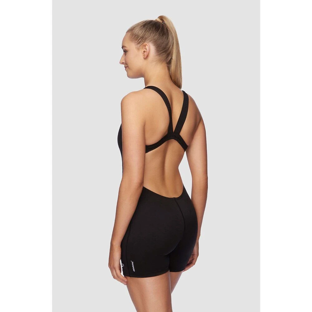 For a classic look that never goes out of style this iconic silhouette is for you. With wide straps, an open leaderback cut, our legsuit provides sporty boyleg coverage and support so that you can take your fitness class or training session in comfort and confidence. 100% chlorine resistant, our Endurance+ fabric ensures your suit will fit like new for longer.