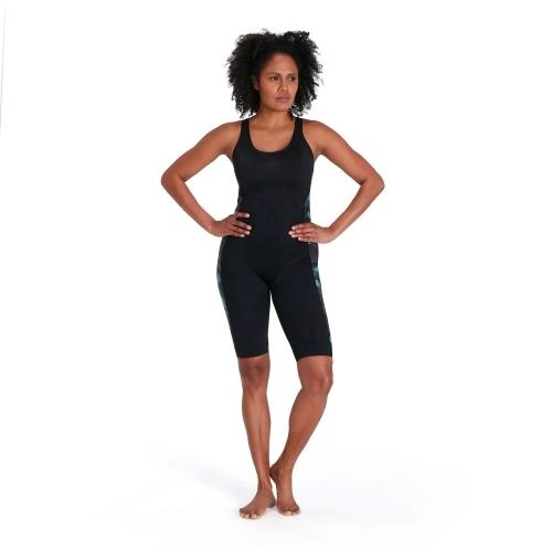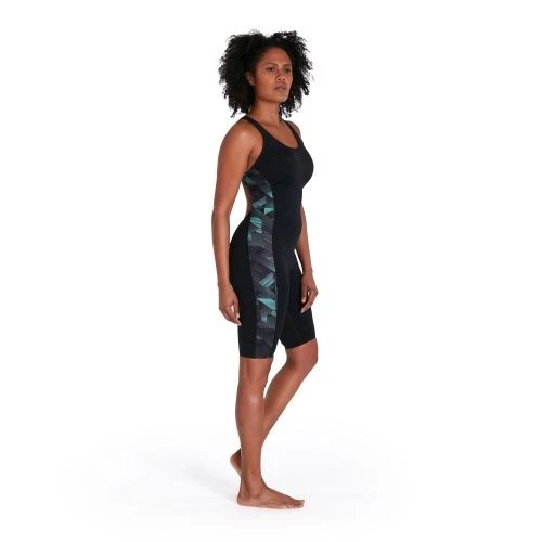 Stylish performance swimwear. With its knee-length coverage and open back, the Leaderback Kneesuit allows you to breeze through your workout without feeling held back. The vivid blue and grey geometric panel design adds a burst of colour against the streamlined kneesuit and includes fine sharkskin details, while a bust shelf liner provides light support. Designed to be durable and better for the environment, the kneesuit features our new ECO Endurance+ fabric, which is 100% chlorine resistant, quick-drying and made from 50% recycled materials.