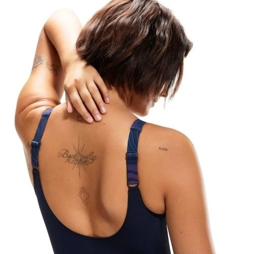 - Racerback design – aids shoulder movement