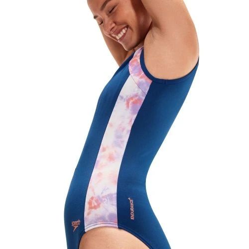 Stylish swimwear for swim, surf and stand-up paddleboarding. Sleek and modern, the blue Panelled Hydrasuit offers a streamlined, high fashion look and includes panels of our pretty lilac tie-dye print. The high front and back provide increased coverage, while the front zip allows for easy changing. A double-lined bust shelf ensures your comfort and support and includes openings for mastectomy prostheses. Designed to be durable and better for the environment, it’s made from our new ECO Endurance+ fabric, which is 100% chlorine resistant, quick-drying and made from 50% recycled materials.
